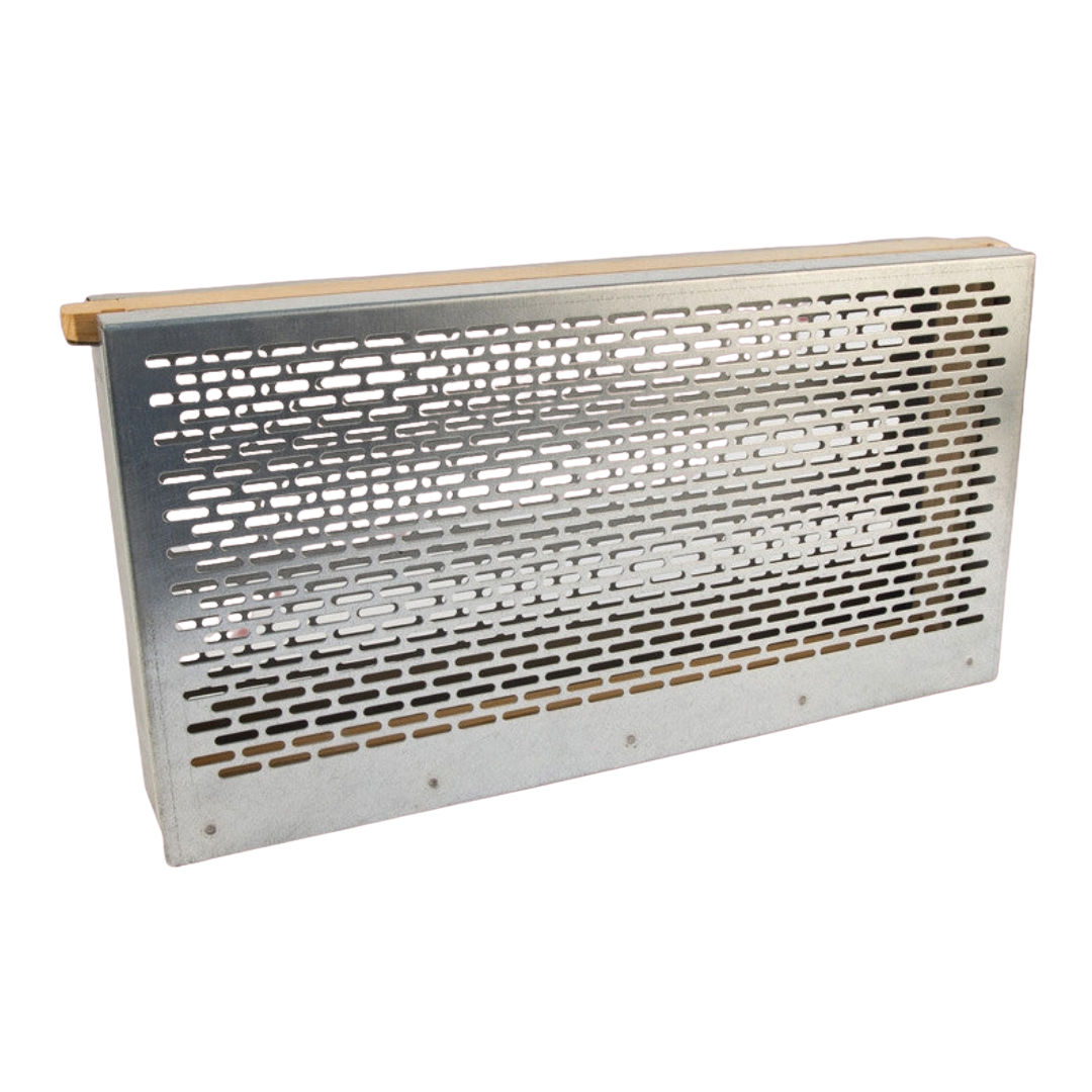 Transform your beekeeping with our Metal Queen Trap - a non-chemical, biological solution for Varroa control. This durable metal frame is designed to disrupt the mite's life cycle by allowing you to destroy brood at 9 day intervals over 36 days. Use it to trap the queen on worker foundation in your hive and accurately determine the age of your eggs and larvae for perfect grafting. Easily cleaned between uses, this trap will last for years.