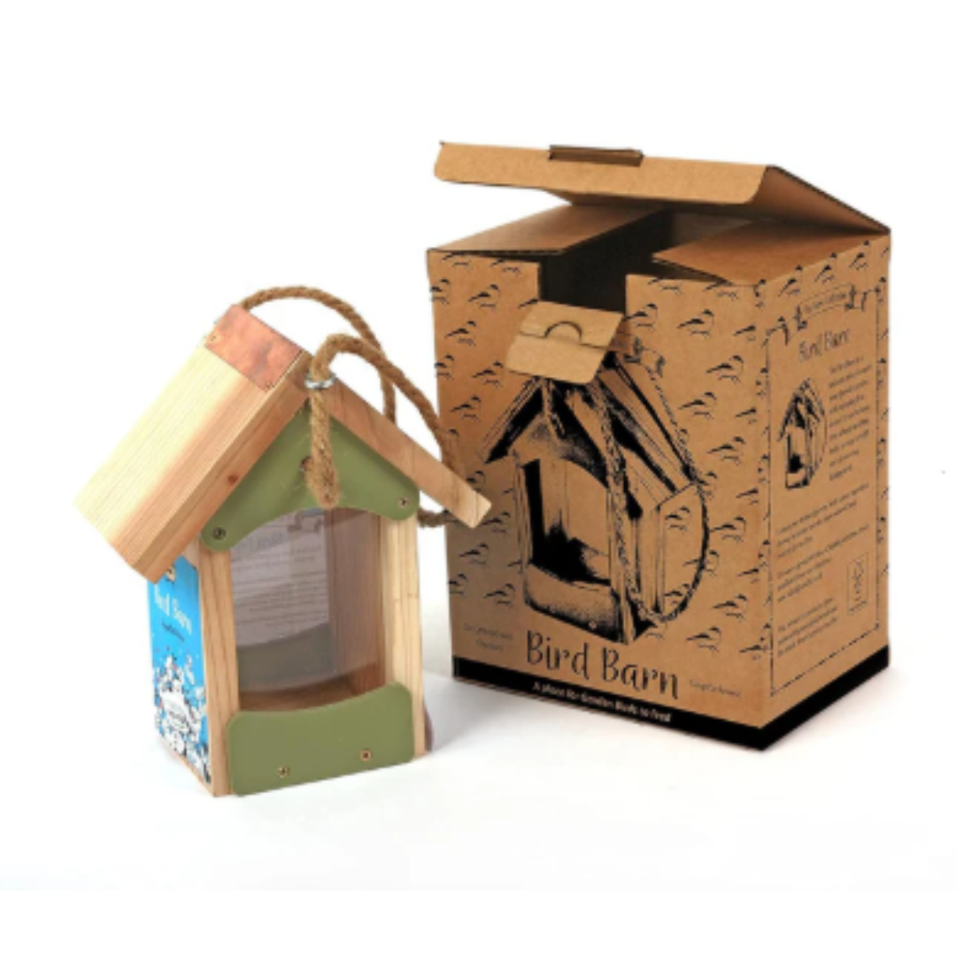 Hang the Bird Barn from a tree branch, hook or bracket in a quiet, sheltered location, ideally 1.5–2 metres above ground. Position away from dense cover where predators may hide, and ensure there is a clear flight path for birds to access the feeder safely.