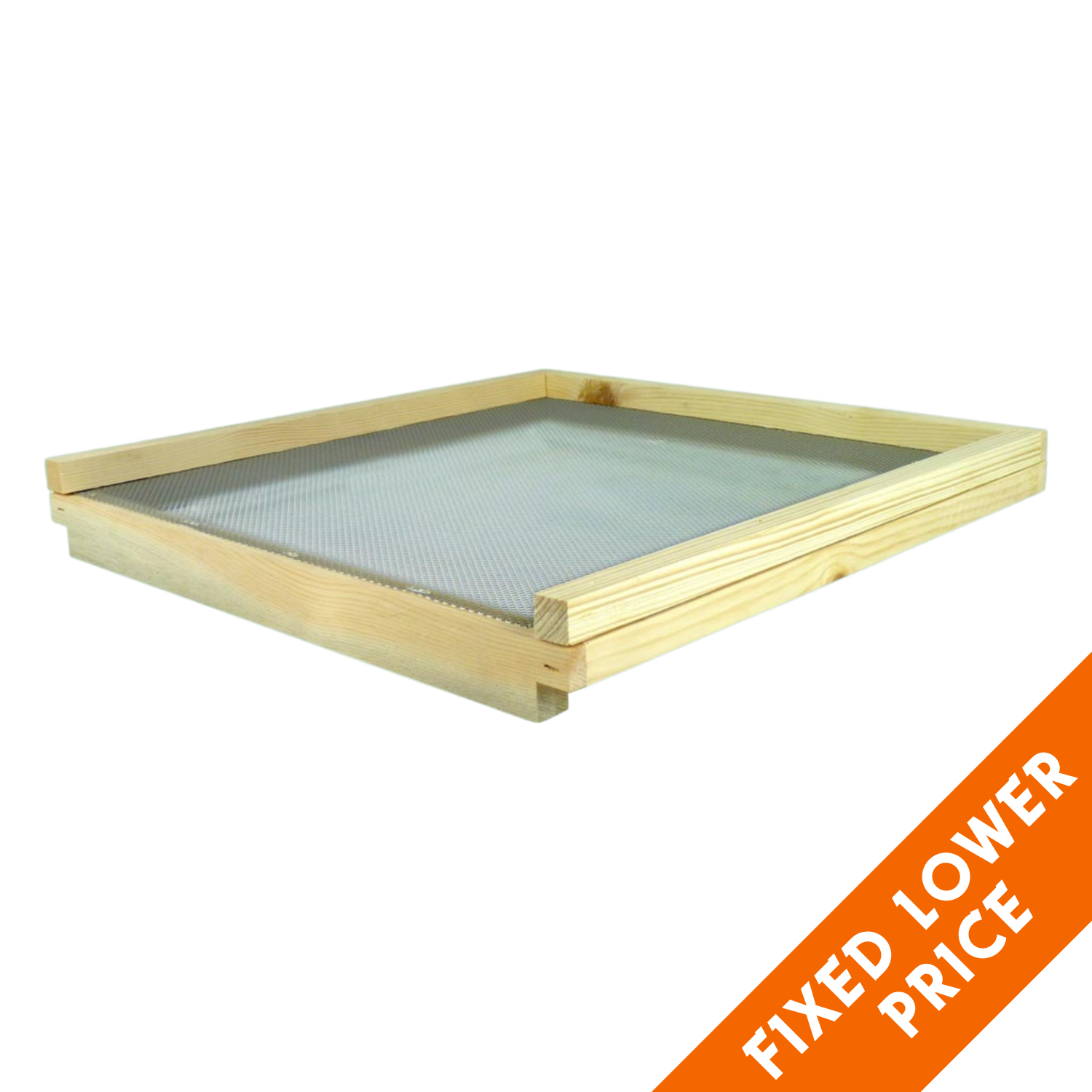 A screened floor which allows mites to fall through so they cannot climb back up into the hive. These floors also increase hive ventilation and come complete with an entrance block. Suitable for National, Commercial and 14x12 Hives.
