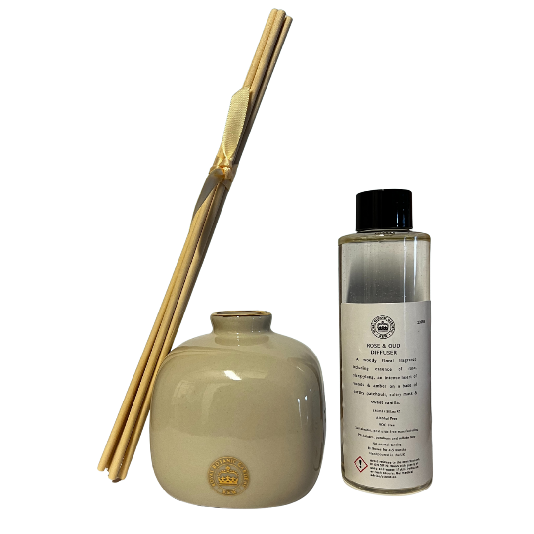 Stunning diffuser set complete with a Kew Botanical Gardens pot, reeds and 150ml diffuser oil - choose your scent! These make the perfect gift or addition to any home. The Kew Home Fragrance collection offers the unique opportunity to recreate the natural fragrances found at Kew Botanical Gardens. Made in the UK, all candles and diffusers use beautiful eco soy wax and essential oils for that added touch of natural charm.