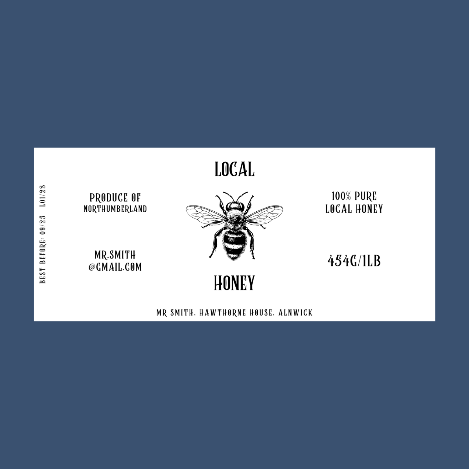 Honey Title - this can be your town, county, your name, whatever you would like! Please make sure to complete all text fields marked with a *, as honey labels have many legal guidelines. We will use your information in the design you select and print it for you.  Be sure to accurately fill in all text boxes, as unfortunately we are unable to refund any labels printed with incorrect information. In some cases, we may need to make slight changes to the design, to accommodate your requirements. If you have a particularly lengthy address or an extensive honey name, we will try our best to accommodate you.