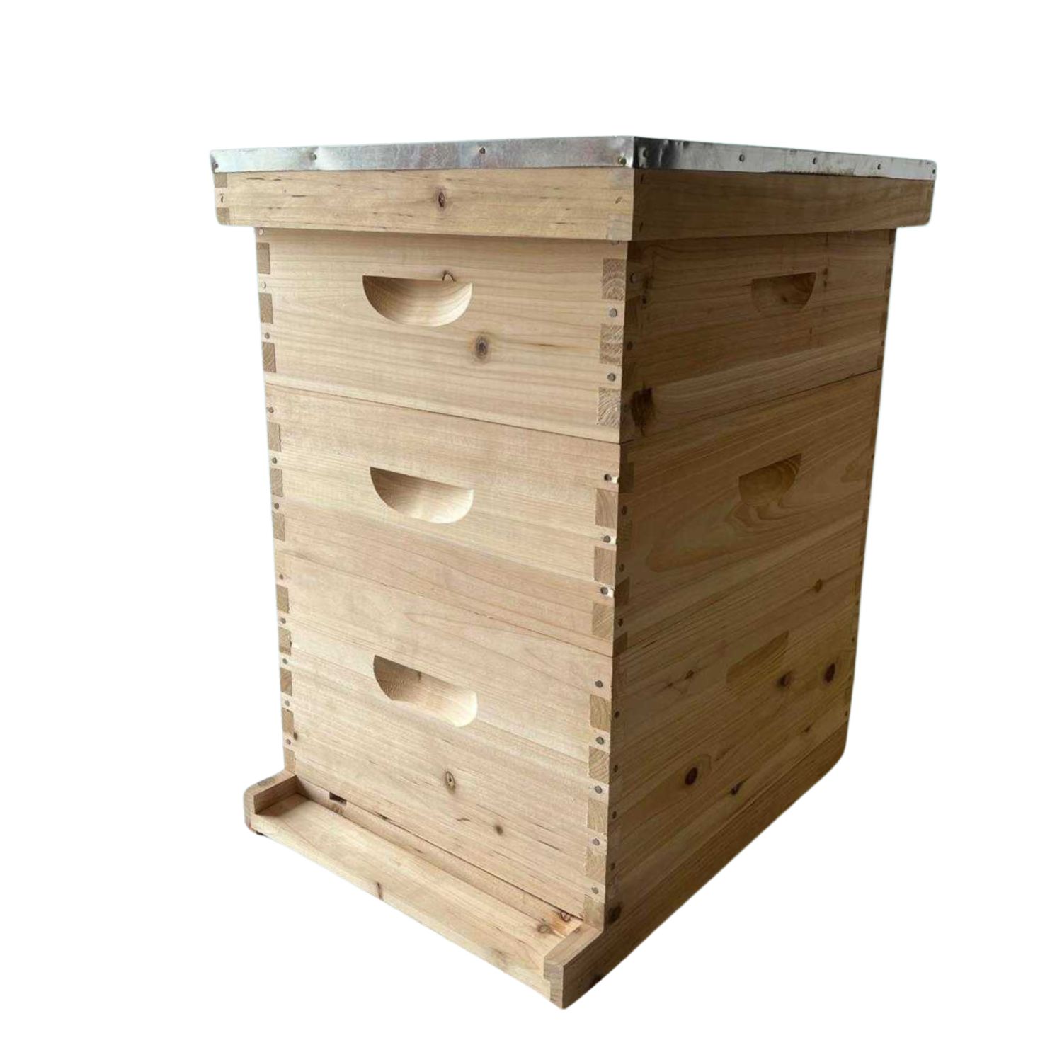 Made from sturdy white wood. Experience the timeless appeal of the Langstroth hive with our basic-quality kit. This well-crafted hive provides ample space for your bees to thrive, ensuring optimal honey production and colony health. The durable construction and easy assembly make it a popular choice for beekeepers of all levels. Start your beekeeping adventure today with our Langstroth Hive Kit.