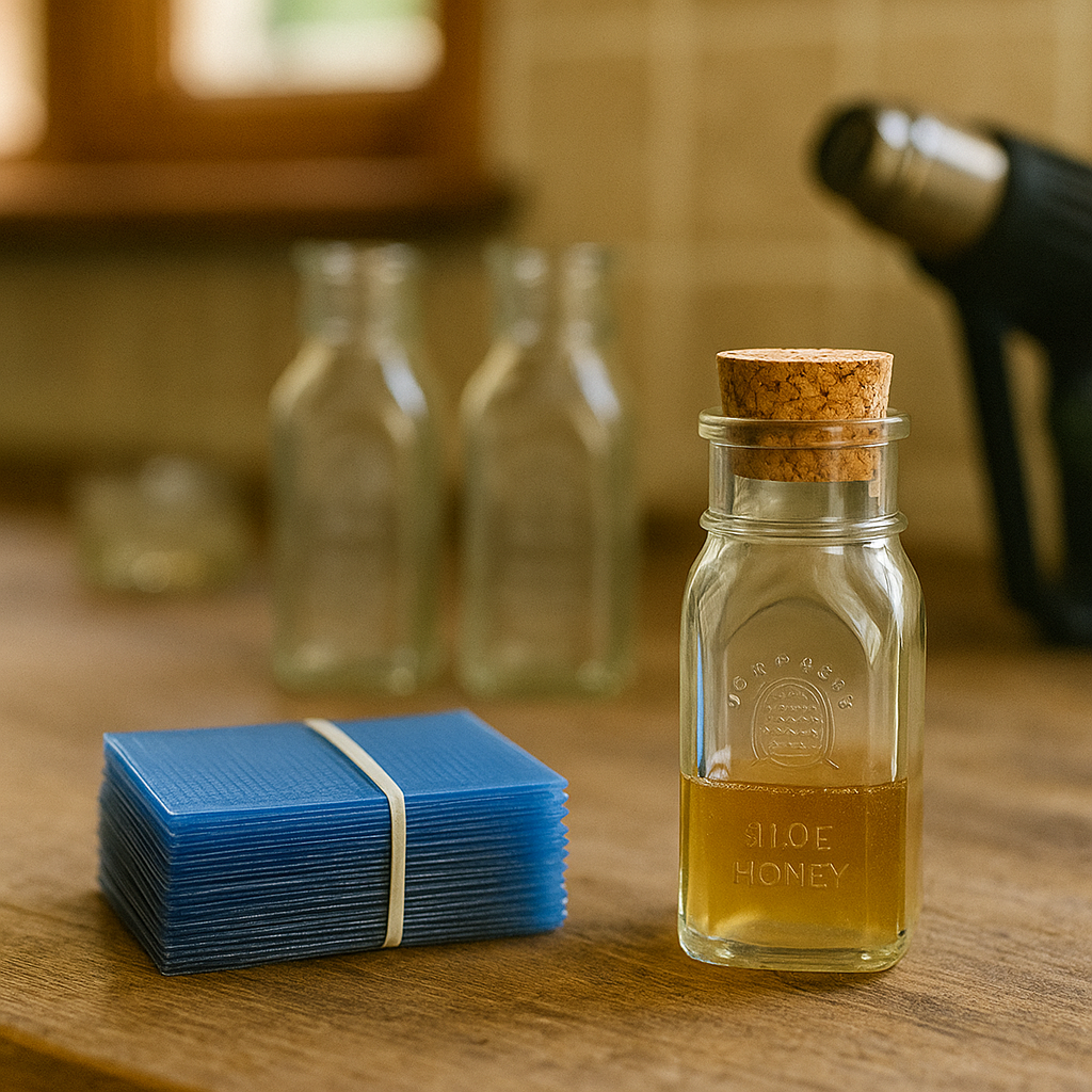 - Apply the shrink band over the neck and closure of the bottle or jar.