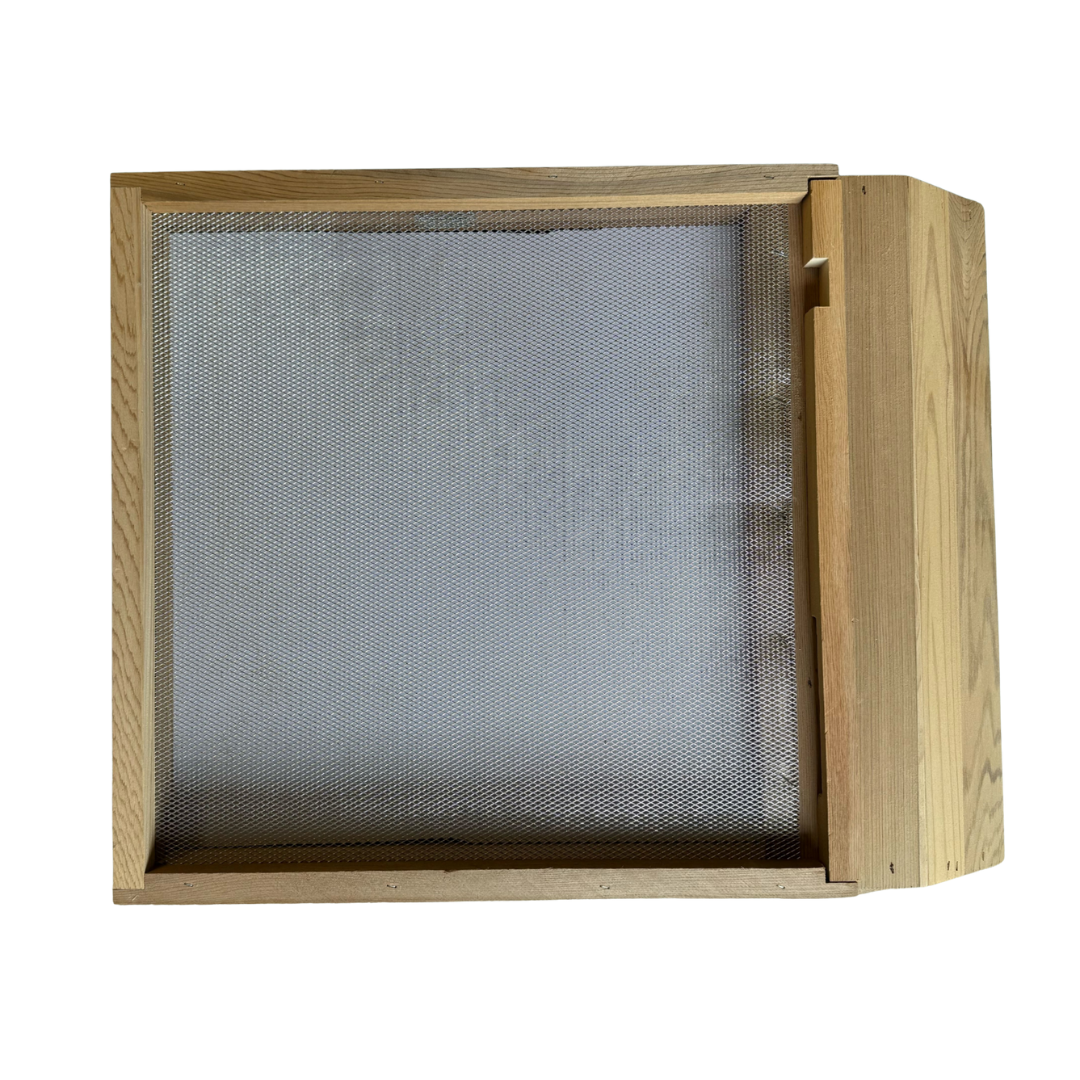 This assembled Varroa floor is made from cedar with a mesh screen and sloping landing board. Examine this floor carefully and you will see it is not just pieces of wood nailed or screwed together, it is much more than that. This product has been the floor style of choice since varroa arrived, it is an aid used in the monitoring of varroa levels. This is largely the dead varroa population that fall from the bees. Comes assembled and ready to be added to your hive. Suitable for National, Commercial and 14x12 Hives.