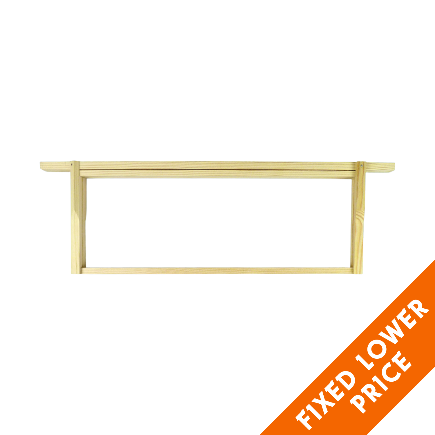 Introducing the National Super Frame, SN4, the ultimate choice for quality and functionality! This second grade product is supplied flat, Hoffman style. The self-spacing design ensures easy installation, please note, nails are sold separately. With top bar measuring at 431mm, side bar at 139mm, and bottom bar at 355mm, this frame is the perfect fit for all your needs.