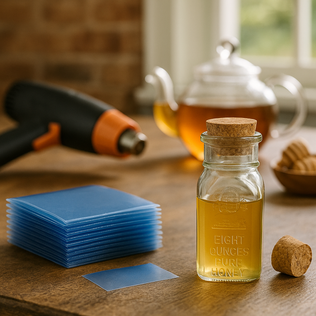 - Apply the shrink band over the neck and closure of the bottle or jar.