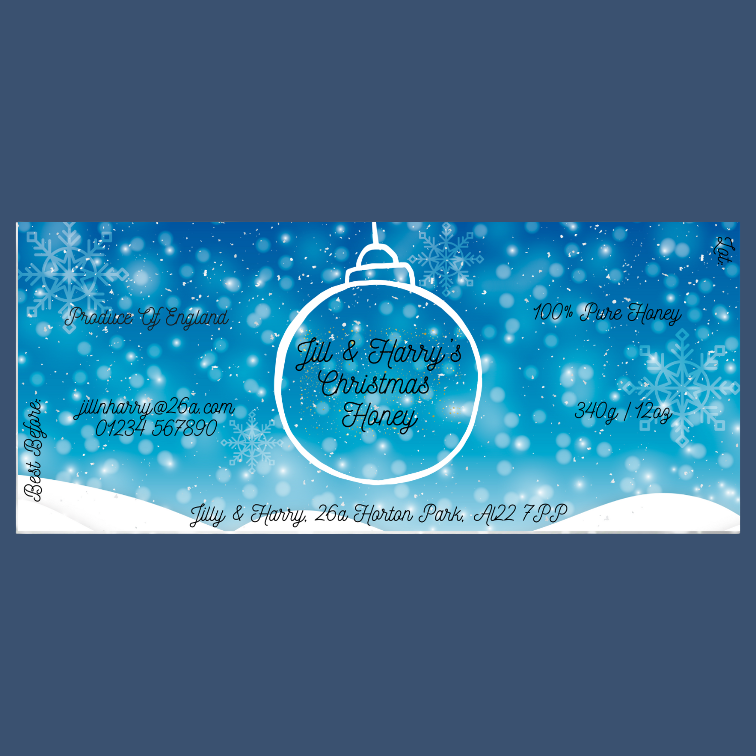 Honey Title - this can be your town, county, your name, whatever you would like! Please make sure to complete all text fields marked with a *, as honey labels have many legal guidelines. We will use your information in the design you select and print it for you. Be sure to accurately fill in all text boxes, as unfortunately we are unable to refund any labels printed with incorrect information. In some cases, we may need to make slight changes to the design, to accommodate your requirements. If you have a particularly lengthy address or an extensive honey name, we will try our best to accommodate you.