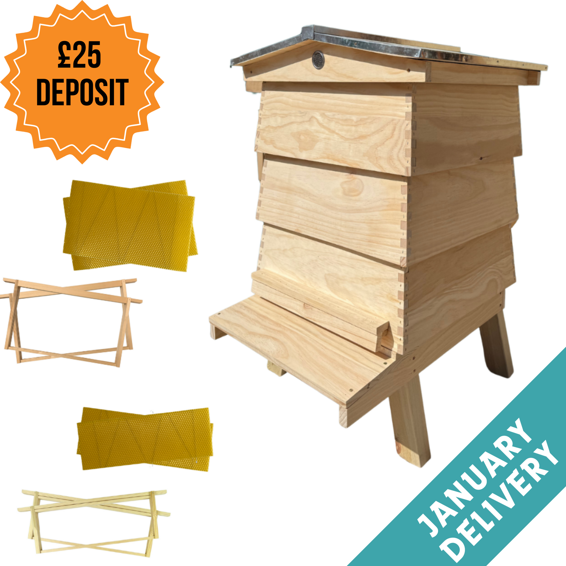 Experience the incredible WBC hive, crafted with Pine and featuring double walls for maximum durability. This traditional hive is in high demand and comes fully assembled.